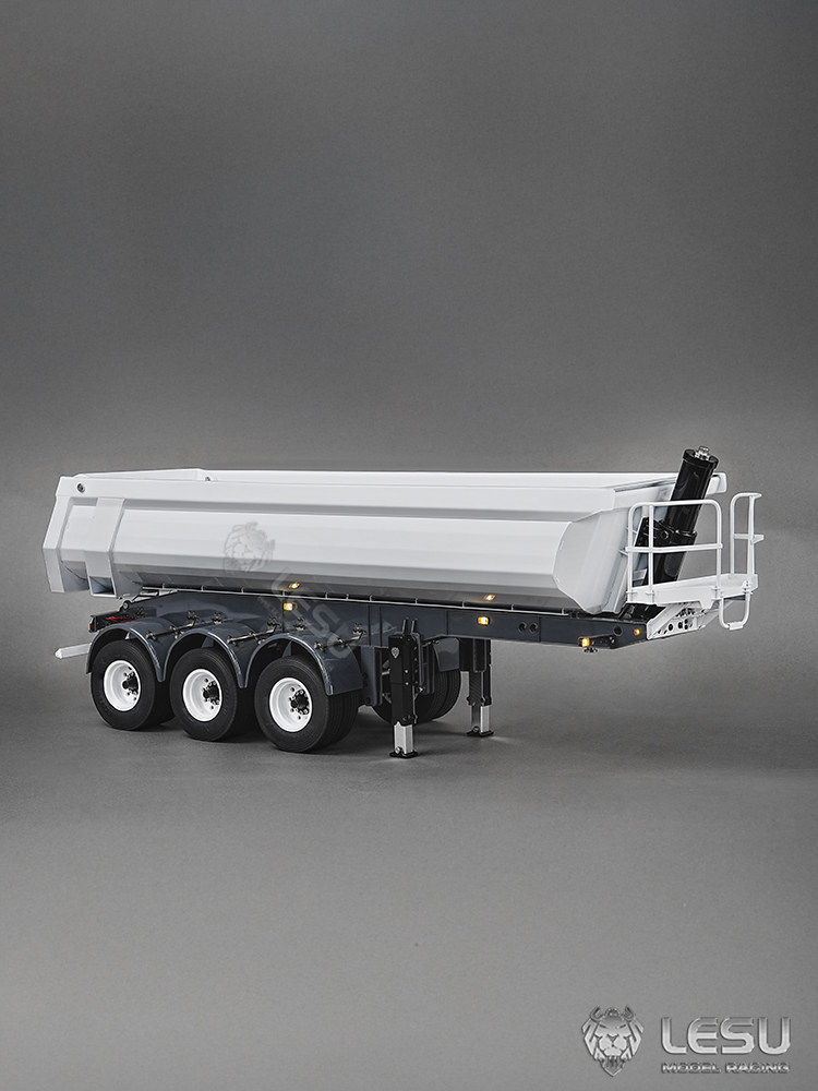 Pump distribution ESC, Y-1509 hydraulic system and supporting oil tank. The first two electric metal horse legs are equipped with N20 brush motors for power distribution and power regulation, and electric lifting support feet. Three-axle non-powered 140 axle: Maersk cut-out refined rear hub with high-quality rubber tires, X-8026-C cut-out suspension There are width indicator lights on both sides of the cut-out, which enriches the details of the semi-trailer. Simulated metal tank decoration, low-key without losing connotation, high-end atmosphere and attention to detail. Semi-trailer taillights, license plate lights, these details are thoughtful and the overall appreciable type. Note: The semi-trailer is not equipped with a separate light group and battery, which needs to be equipped by the player, or it can be connected back to the light group of the tow head, which requires the player to DIY.